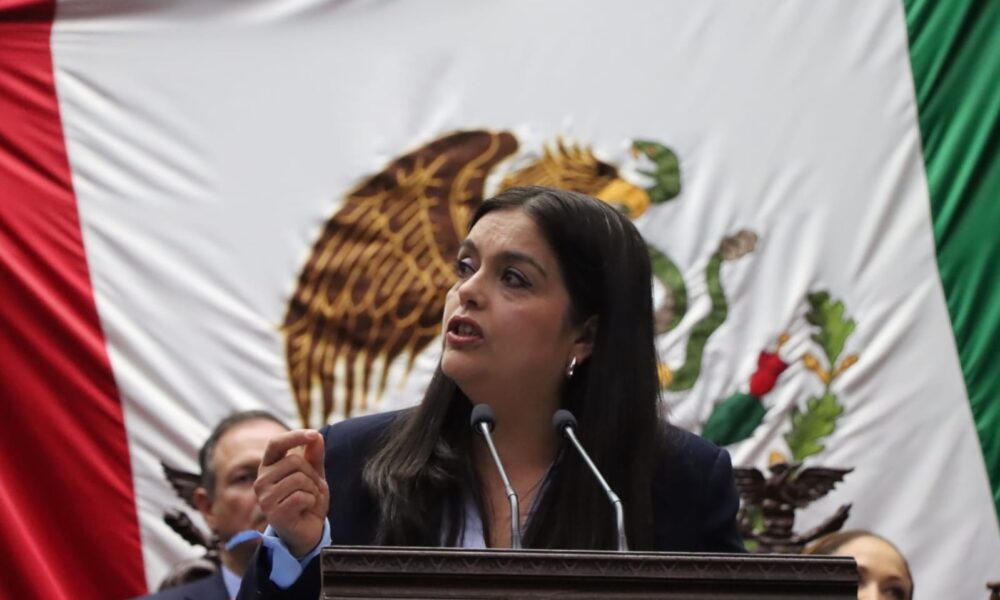 Morelia, Michoacán, a 27 de marzo de 2026. Durante la presentación de la campaña “Con drogas no jalo” en el Congreso del Estado, la diputada local...