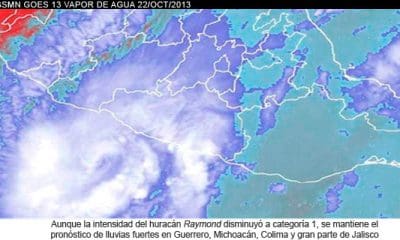 Frente a las costas de Guerrero, 155 kilómetros al sur de Zihuatanejo y a 215 kilómetros al oeste-suroeste de Acapulco, Guerrero, el Huracán Raymond se degradó...