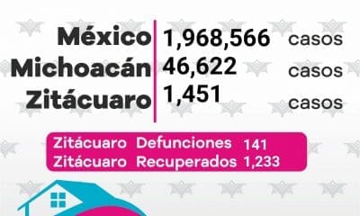 Zitácuaro reporta un muerto 12 casos positivos a COVID-19, suma 141 defunciones y 1,451 casos positivos.