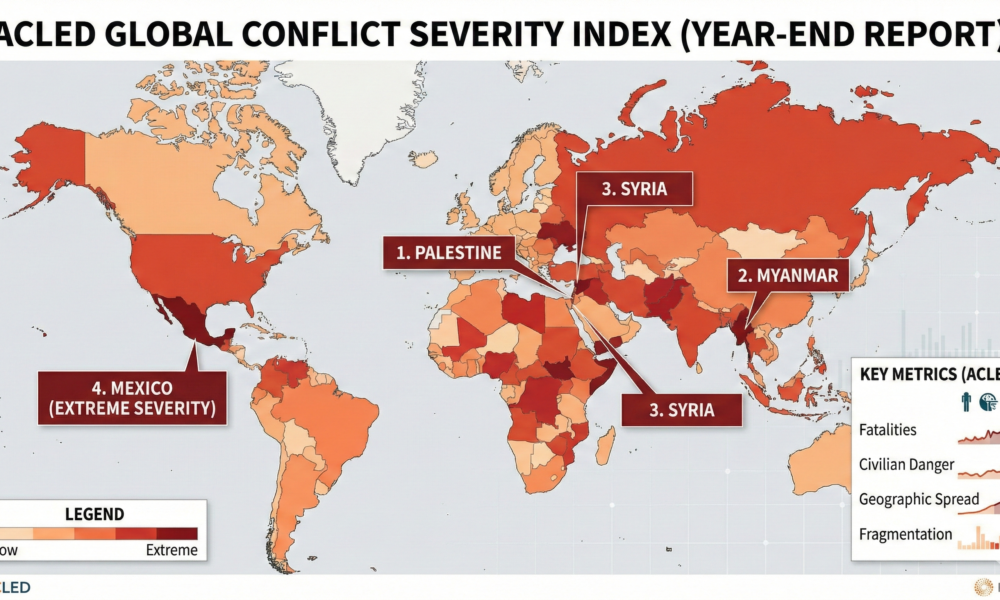 CIUDAD DE MÉXICO — México concluye el año posicionado en el cuarto lugar a nivel mundial en el Índice de Gravedad del Conflicto (Conflict Severity Index),...