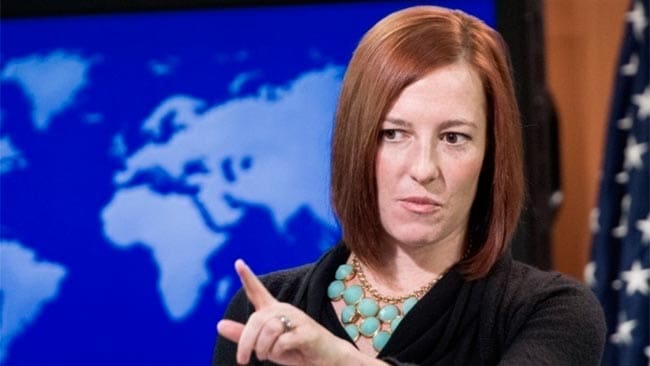 Periodistas que cubren la Casa Blanca rieron cuando la Portavoz del Departamento de Estado, Jen Psaki, dijo que su país no apoya ni promueve cambios de Gobierno a través de...