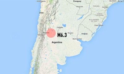 Un terremoto de magnitud 6,3 se ha registrado en Argentina, a unos 109 kilómetros al noroeste de la ciudad de San Luís.