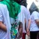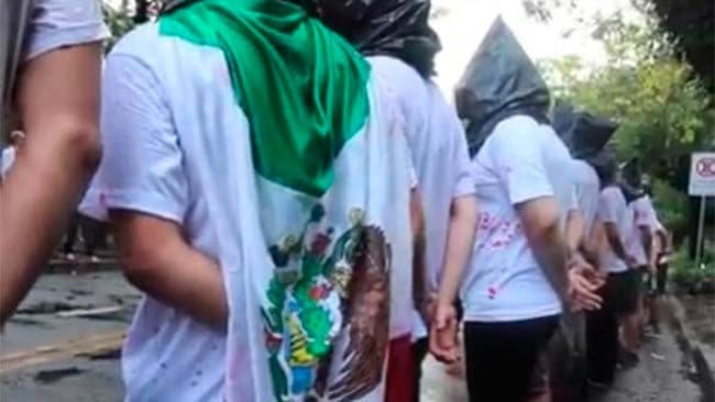 Un numeroso grupo de jóvenes, entre los que hay argentinos y mexicanos residentes en este país, efectúa una vigilia en Plaza de Mayo por Ayotzinapa.