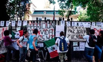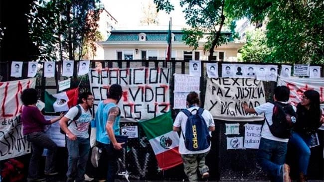 Cerca de 50 activistas brasileños realizaron una protesta en frente del Consulado de México en São Paulo para denunciar la desaparición en Iguala de los 43...