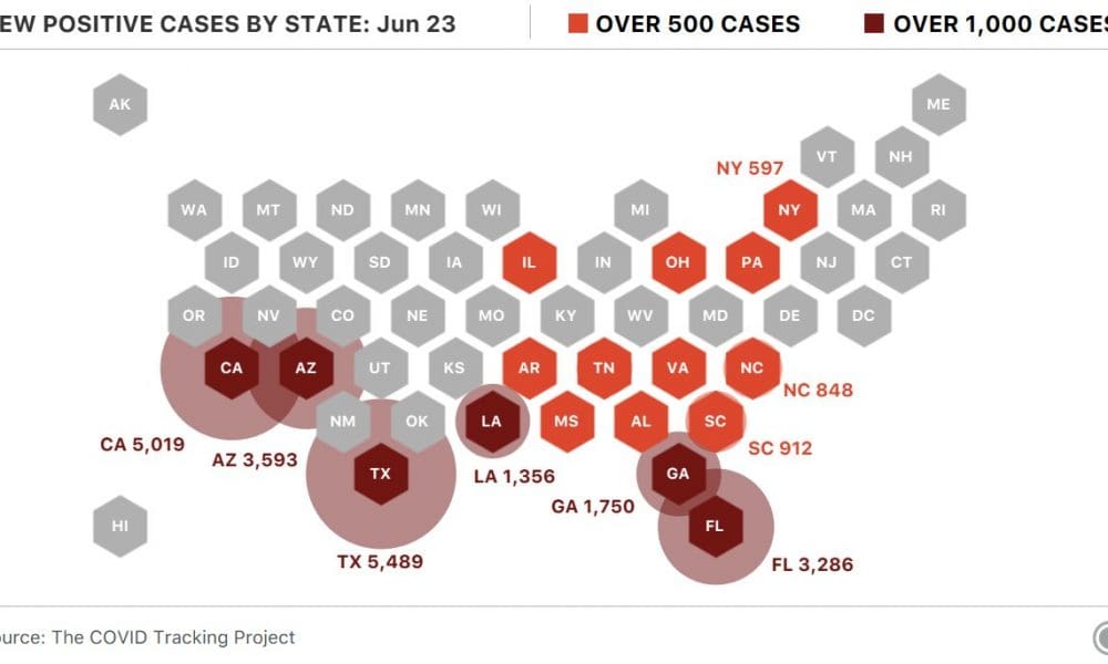 De acuerdo con la Universidad Johns Hopkins, los contagios de COVID-19 en el país alcanzaron su máximo en dos meses. Texas, Arizona y Florida se encuentran...