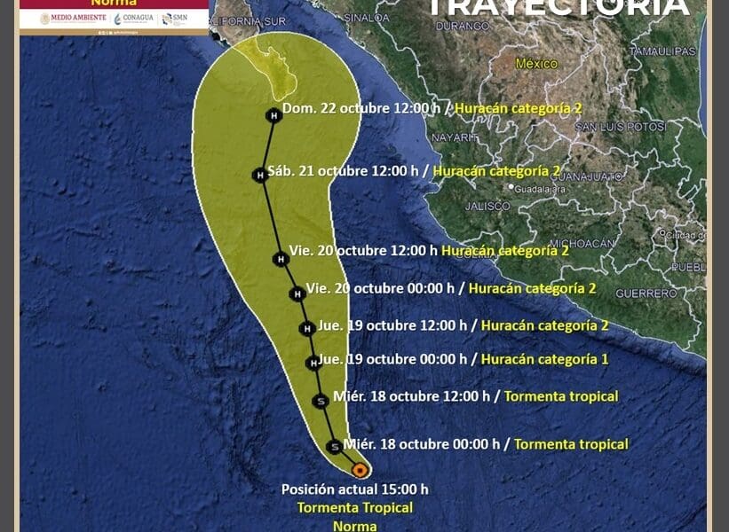 La tormenta tropical Norma se formó este martes al suroeste de las costas de Michoacán, en el océano Pacífico, y se desplaza hacia el oeste-noroeste a...