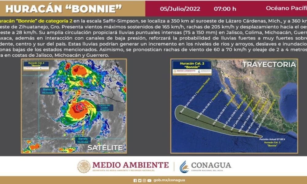 Provocará “Bonnie” lluvias fuertes, PC estatal en alerta