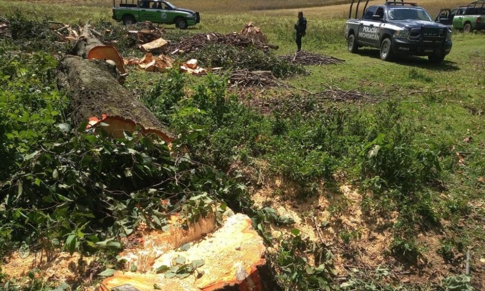 En Senguio, asegura SSP equipo utilizado presuntamente para tala clandestina