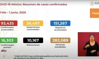 El total de casos confirmados en México es de 93,435, de los cuales 16,303 son casos activos y 10,167 defunciones, informó José Luis Alomía, director de...