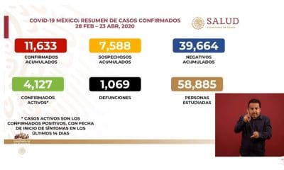 José Luis Alomía, director General de Epidemiología, informó que, hasta el día de hoy, hay 4 mil 127 casos de #coronavirus activos y 1069 defunciones, mientras...