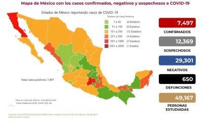 En México hasta el día de hoy se han confirmado 7,497 casos y 650 defunciones por COVID-19.