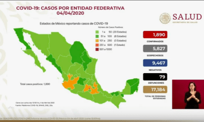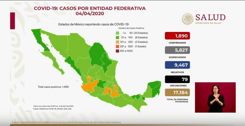 México reporta 79 muertes (19 más que ayer) por COVID-19, así como 1890 casos positivos y 5827 sospechosos.