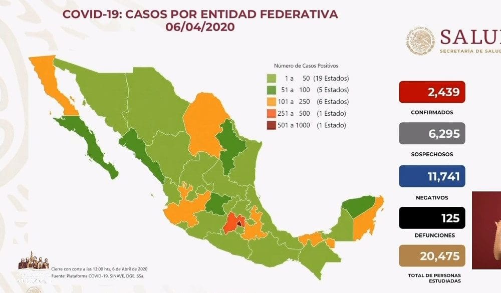 El director de Epidemiología de la Secretaría de Salud, José Luis Alomía informó que en México ya son 2,439 casos confirmados, 6,295 sospechosos y 125 las...