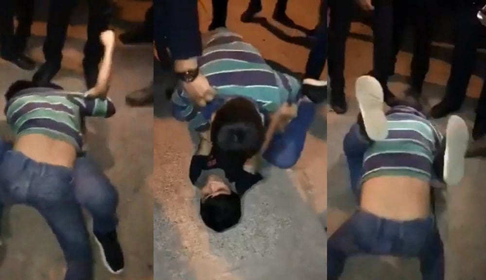 En un video que circula en redes sociales se ve cómo los adultos hacen un círculo y obligan a los pequeños a golpearse en el piso.
