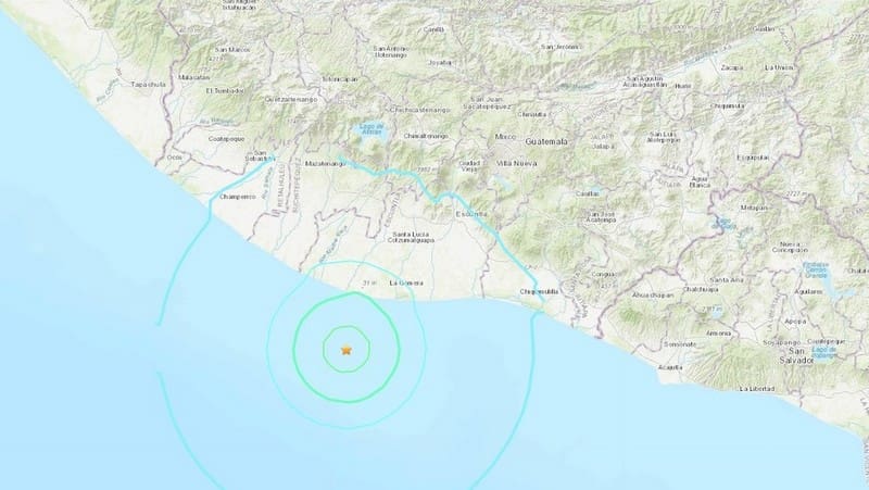 El epicentro es 35 kilómetros al suroeste del Puerto de San José, junto al océano Pacífico.