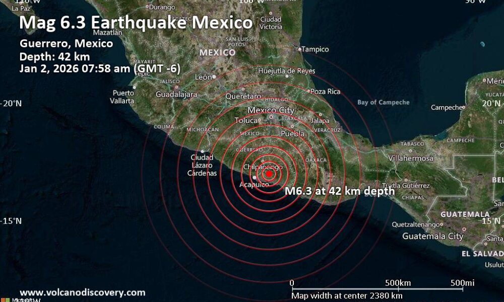 Zitácuaro Michoacán, 2 ene – El Servicio Sismológico Nacional (SSN) reportó un sismo de magnitud 6.5 el 2 de enero de 2026 a las 07:58 horas...