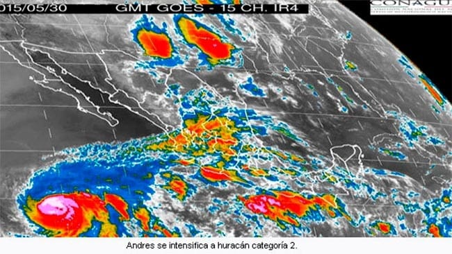El Servicio Meteorológico Nacional (SMN), dependiente de la Comisión Nacional del Agua (Conagua), informa que esta mañana Andres se ha intensificado a huracán categoría 2. A...