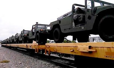 Un video grabado este fin de semana por un transeúnte muestra cómo un cargamento con cientos de vehículos militares nuevos ha entrado a México procedente de...