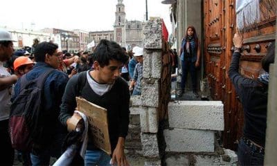 Luego de marchar desde el Monumento a la Revolución, estudiantes del Instituto Politécnico Nacional llegaron a la sede de la Secretaría de Educación Pública (SEP).