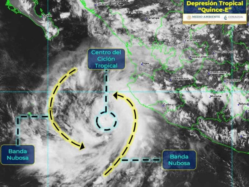Esta tarde, se formó la Depresión Tropical Quince-E en el océano Pacífico. Su centro se localiza a 390 km al oeste-suroeste de Manzanillo, Colima, y a...