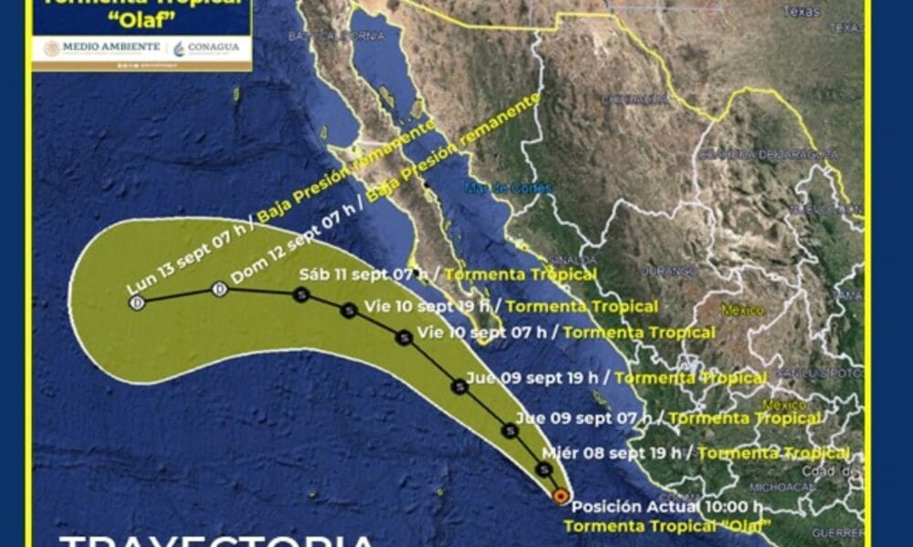 La Depresión Tropical “Quince-E’ se ha intensificado a la Tormenta Tropical “Olaf, su centro se localiza a 255 km alsuroeste de Cabo Corrientes, Jal., y a...