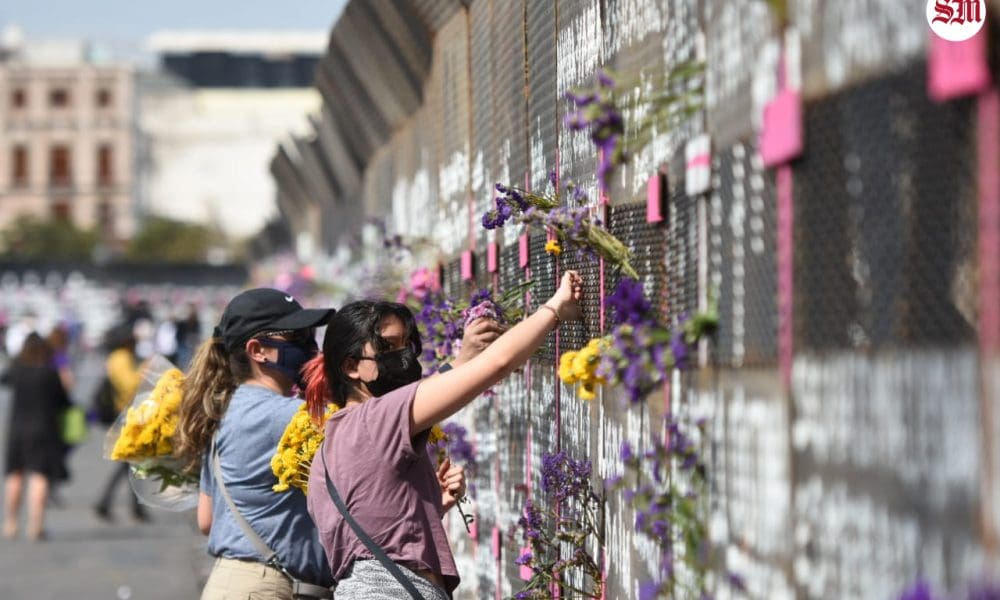 A un día de las marchas por el Día Internacional de la Mujer, grupos de mujeres han acudido al Zócalo para colocar flores, carteles y pañuelos...