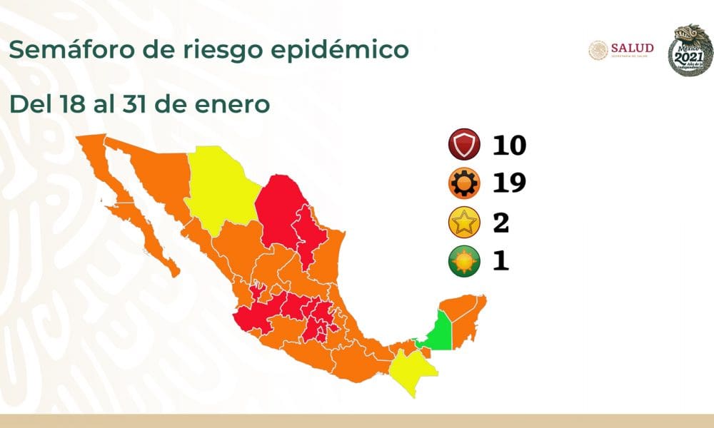 A partir del 18 de enero se encuentran en semáforo ROJO: Ciudad de México, Coahuila, Estado de México, Guanajuato, Hidalgo, Jalisco, Morelos, Nuevo León, Querétaro y...