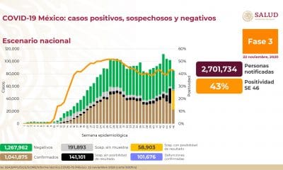 Al 22 de noviembre de 2020 hay 1,041,875 casos confirmados #COVID19. Se han registrado 101,676 defunciones confirmadas y 779,104 personas recuperadas, según informó la Secretaría de...