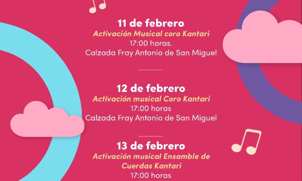 Morelia, Michoacán; 10 de febrero de 2026. La Secretaría de Cultura de Morelia (SeCultura) llevará a cabo una serie de presentaciones musicales del 11 al 13...