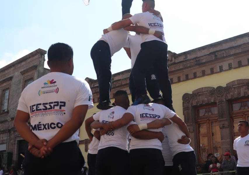 Un total de 165 cadetes del instituto de formación policial del estado, realizaron mosaicos con las palabras IEESSPP, MICHOACÁN y MÉXICO.
