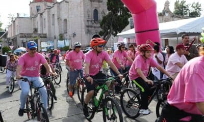 La Presidenta honoraria del DIF Morelia, Rosalva Vidal Perez, dio el arranque a la Rodada Rosa que se realizó este domingo en apoyo a la lucha...