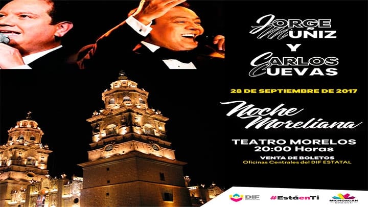 Morelia, Michoacán. El Sistema para el Desarrollo Integral de la Familia (DIF) Michoacán invita a la Noche Moreliana con el concierto de Jorge Múñiz y Carlos Cuevas...
