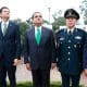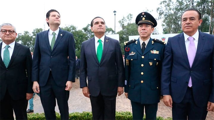 Morelia, Michoacán.- El Gobernador Constitucional Silvano Aureoles Conejo, asistió a la ceremonia de izamiento de la Bandera Nacional Monumental en la Plaza Héroes de la Independencia...