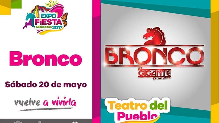 Morelia, Michoacán.- Esta noche el Teatro del Pueblo de la Expo Fiesta Michoacán recibe a Bronco, que ofrecerá un concierto totalmente gratis para quienes adquieran su boleto...