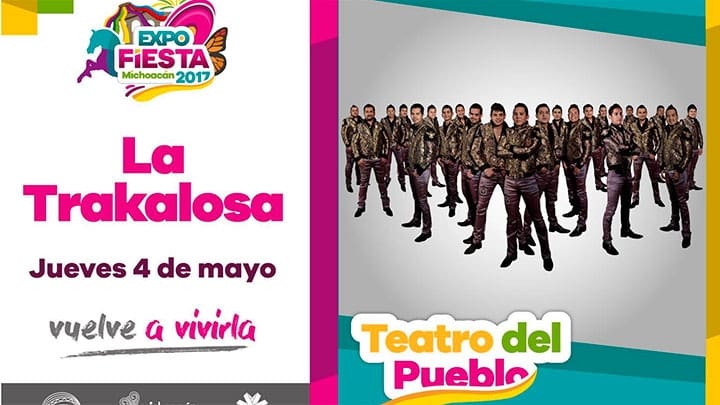 Morelia, Michoacán.- Esta noche en el Recinto Ferial, sede de la Expo Fiesta Michoacán 2017, se presentará La Trakalosa, que ofrecerá un concierto totalmente gratuito a partir...