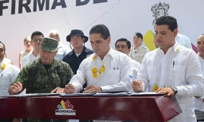 Tuzantla, Michoacán.- El Gobernador Constitucional del estado de Michoacán, Silvano Aureoles Conejo, firmó junto con Octavio Ocampo, presidente municipal de Tuzantla, y el Comandante de la...