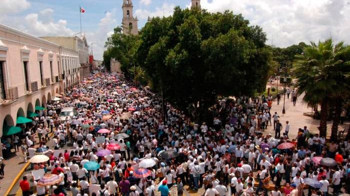 Más de mil 200 maestros se manifestaron el pasado sábado en la ciudad de Mérida al grito de “Fuera Peña Nieto”, “Evalúen a Chuayffet”, “Muera la...