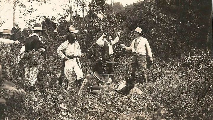Con estas tres palabras escrita en una de las 17 fotografías, se da testimonio de una secuencia gráfica sobre una historia de vaqueros y representantes de...
