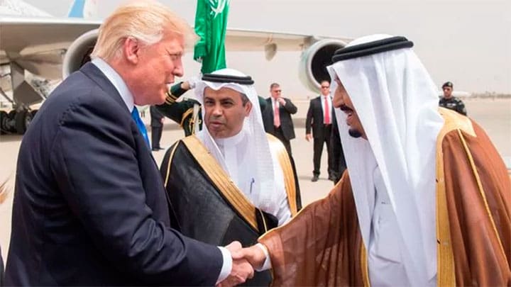 El presidente de los Estados Unidos, Donald J. Trump, llegó este sábado a la capital de Arabia Saudita en su primera gira internacional.