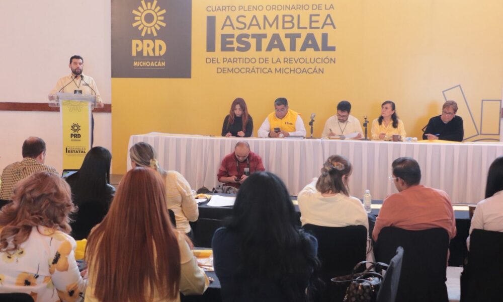 Morelia, Michoacán | 16 de marzo de 2026. Durante el Cuarto Pleno de su I Asamblea Estatal, el Partido de la Revolución Democrática (PRD) en Michoacán...