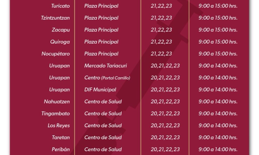 MORELIA, Michoacán a 19 de enero de 2026. La Secretaría de Salud de Michoacán (SSM) informó sobre la intensificación de las jornadas de inmunización contra la...