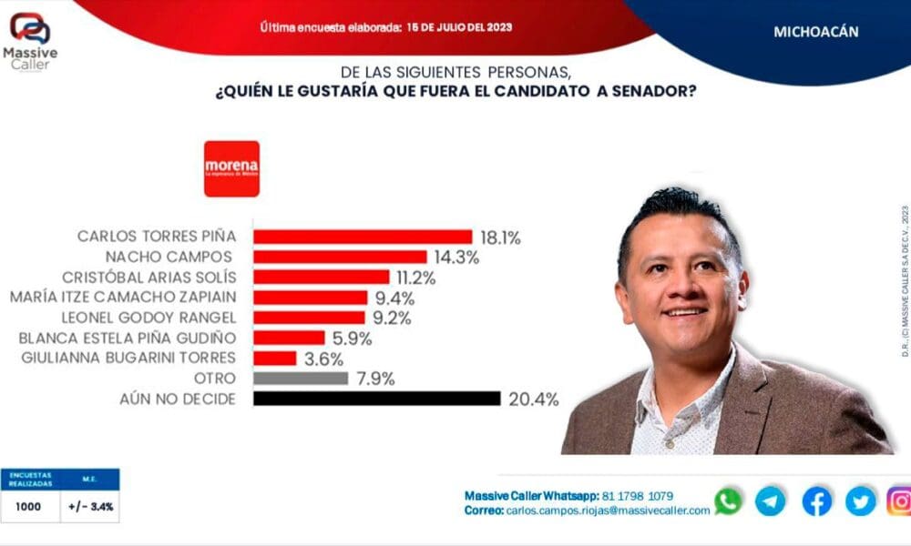 Inminente triunfo de Morena y Torres Piña rumbo al 24 Morelia, Michoacán, 19 de julio de 2023.- Las preferencias electorales vaticinan un contundente triunfo de Morena...