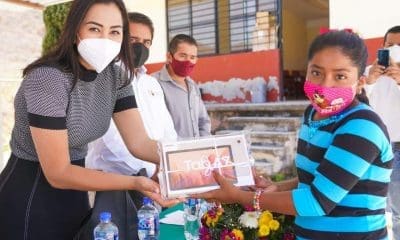Entrega Zayra Yuritzi Olivares Tablets a estudiantes de Susupuato