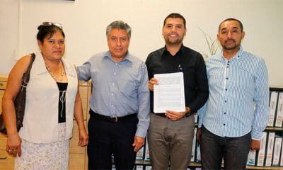 Tuzantla Michoacán.- El Presidente Municipal De Tuzantla Octavio Ocampo Cordova acompañado del Síndico Municipal José Manuel Albarrán y la Regidora Araceli Sánchez firmaron el convenio del...