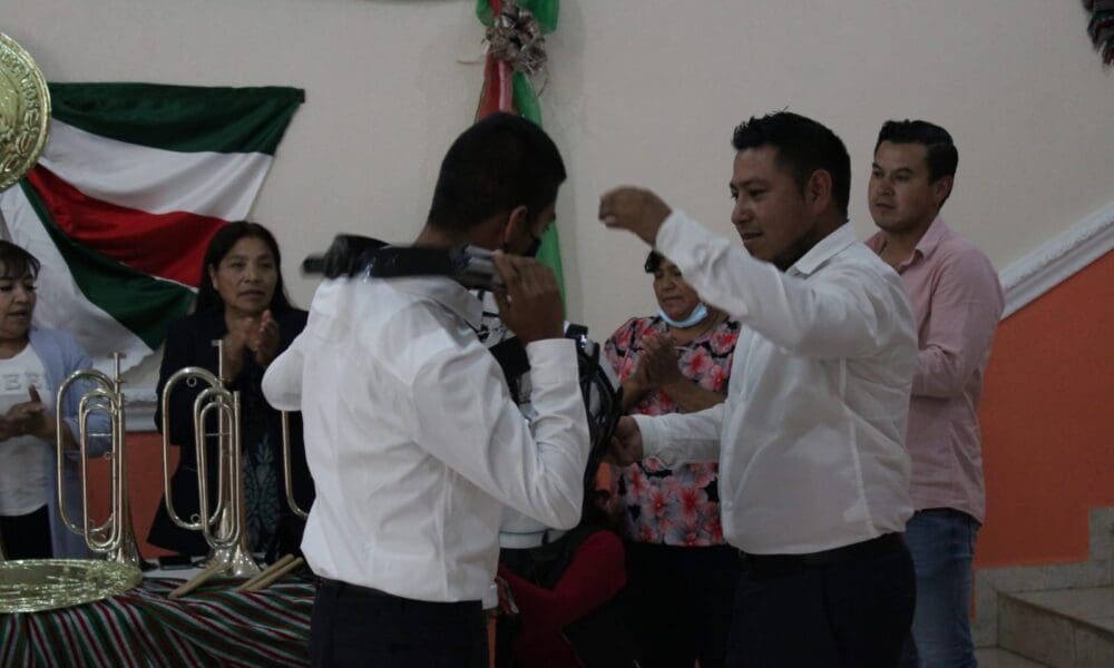 Se entrega equipo de banda de guerra a jóvenes ocampenses.