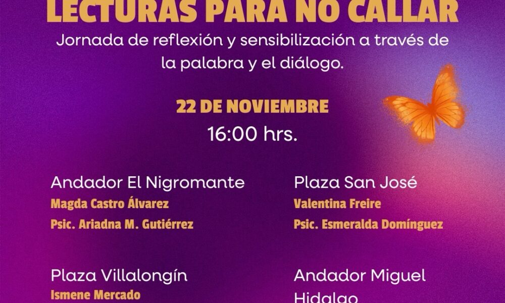 Morelia, Michoacán, 19 de noviembre de 2025. La Secretaría de Cultura de Morelia (SeCultura) convocó a la ciudadanía a participar en “Lecturas para no callar”, una...
