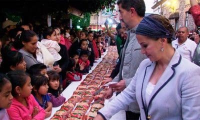 Zitácuaro, Michoacán.- Más de 200 metros de rosca fueron repartidos a niños y adultos este martes por la tarde en la plaza cívica Lic. Benito Juárez...