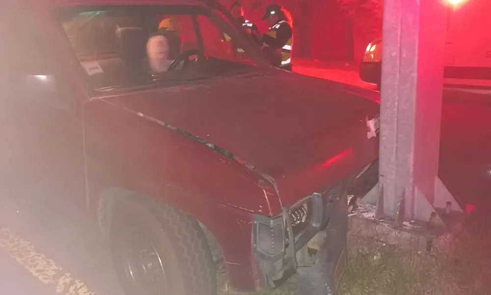 Zitácuaro, Mich., 31 de diciembre de 2023. Un hombre de 52 años resultó ileso tras chocar su camioneta Nissan Estaquitas de color rojo contra un letrero...