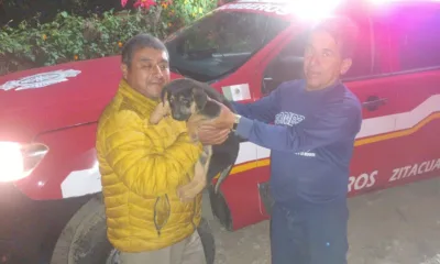 Zitácuaro, Michoacán, 10 de diciembre de 2023. Un perro de raza mestiza fue rescatado por el heroico cuerpo de bomberos de Zitácuaro, luego de quedar atrapado...