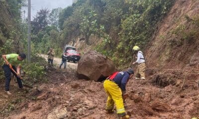 Zitácuaro, Michoacán, 23 de noviembre de 2023. Un deslave de lodo y una piedra de aproximadamente tres toneladas de peso obstruyeron el camino que conduce hacia...